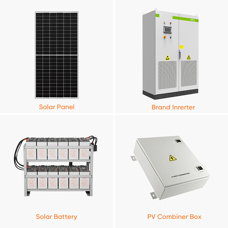 Energy Storage system with complete package kits include Solar module, Hybrid Inverter, Flexible Battery Type(energy storage lithium battery,lead-acid), mounting structure and accessoies.