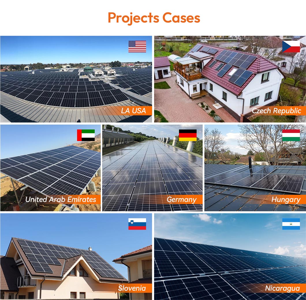 | Mounting System | Customized whole set based on rooftop or ground | ||||