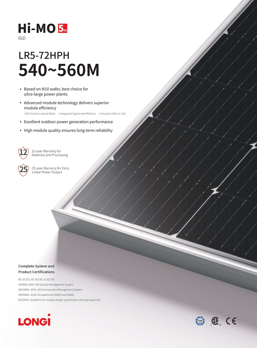 LONGi Mono Soar Moudle 550W Solar Panel 555W 560W With 182mm Solar Cells