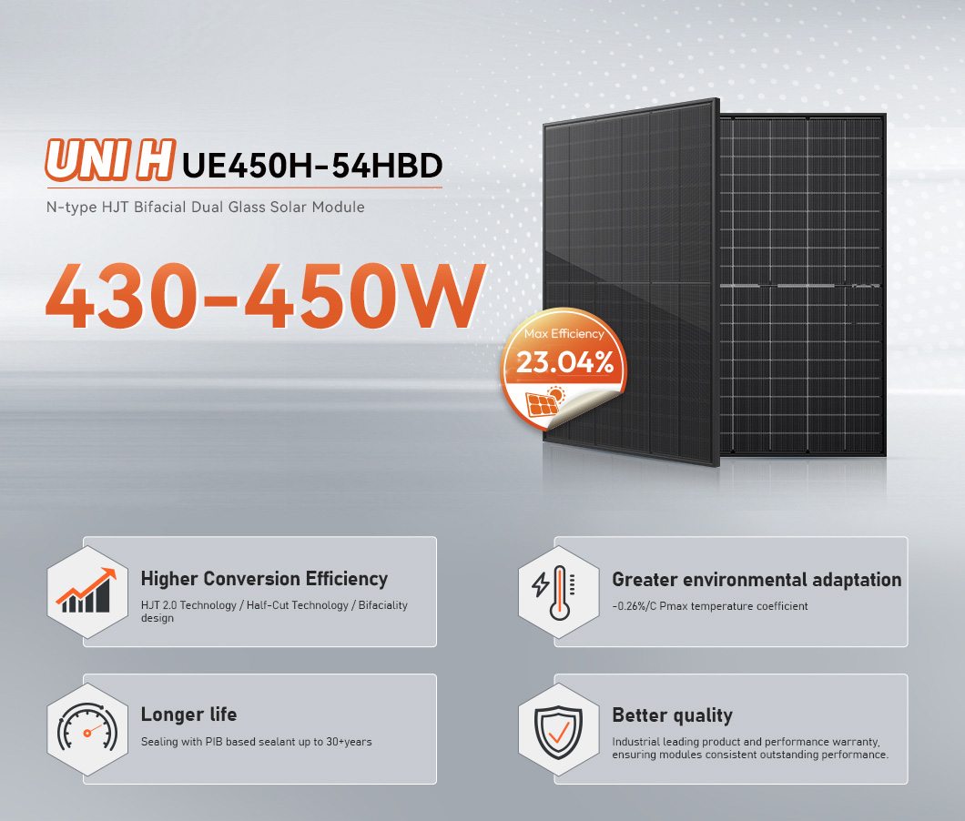 2025 Hot Solar Panels HJT 430-450W  All Black Bifacial